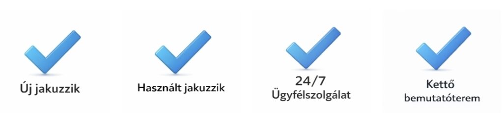 Új jakuzzijaink kizárólag gondosan válogatott, magas minőségű alapanyagokból készülnek. Olyan ár-érték arányt teremtünk, amely valódi értéket képvisel – kompromisszumok nélkül. A nálunk vásárolt jakuzzi nemcsak látványos, hanem hosszú távon is megbízható befektetés a pihenésbe.