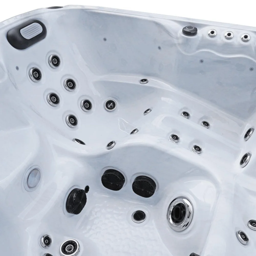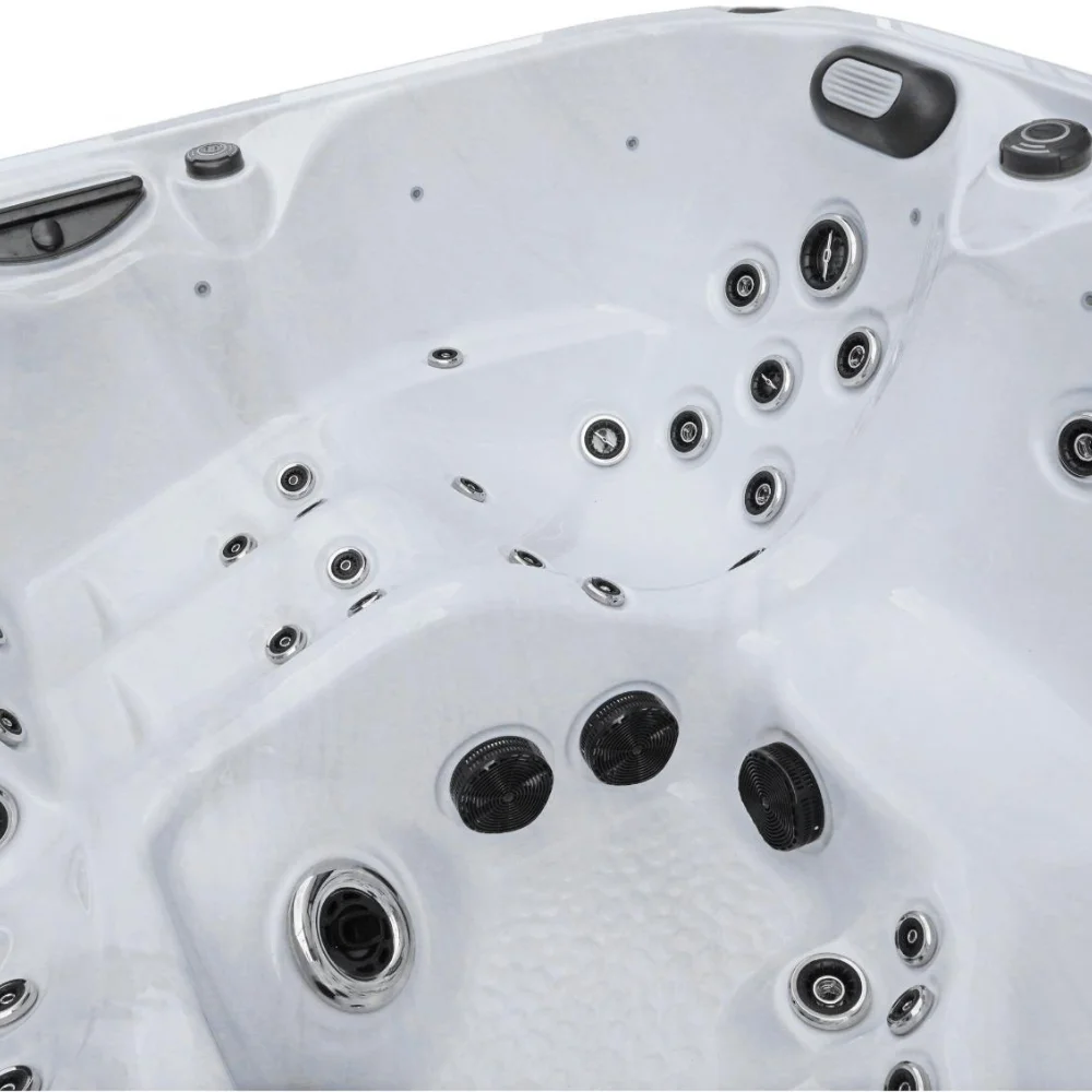 A jakuzzi összesen 56 darab rozsdamentes acél fúvókával van felszerelve, amelyek különböző elrendezésben és típusban biztosítják a változatos masszázsélményt. A forgó fúvókák szélesebb területen masszírozzák az izmokat, míg az állítható, direkt fúvókák célzottabb, mélyebb és erőteljesebb masszázst biztosítanak. Az ülésekben elhelyezett fix fúvókák pedig a test meghatározott pontjait kezelik, így maximális ellazulást nyújtanak.